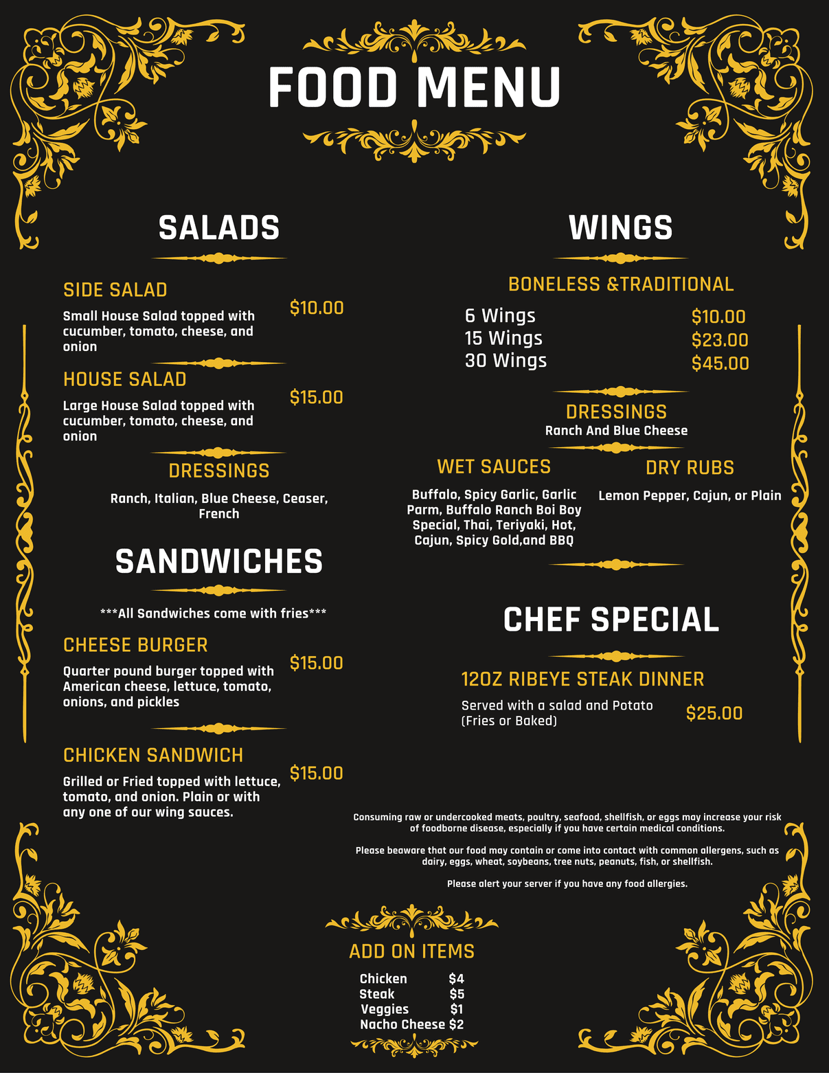 Food & Bottle Menus